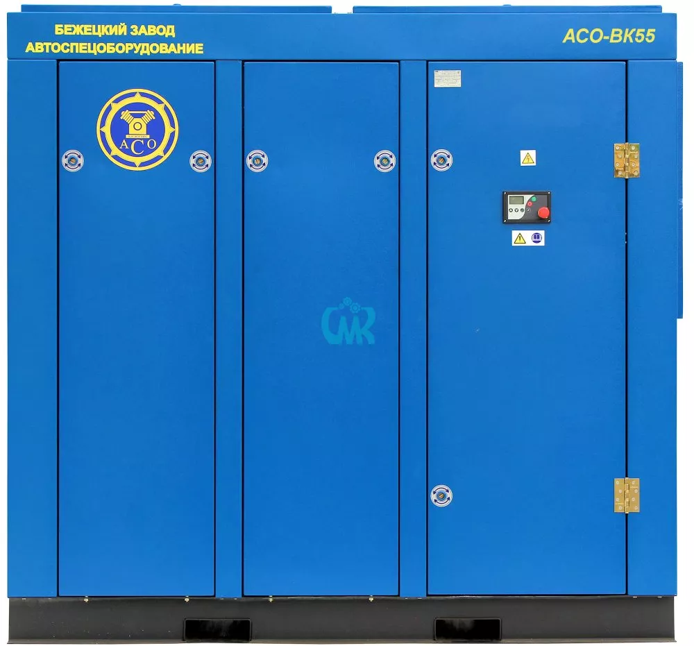 Компрессор АСО-ВК55/10 ESQ с переменной производительностью 4000-8000 л/мин имеет рабочее давление 10 атм. Винтовой блок EVO15 (Rotorcomp) приводится в движение трехфазным двигателем мощностью 55 кВт. Уровень шума 72-76 дБа. Температура воздуха на всасывании в диапазоне от 10 до 45°С. Габариты компрессора 226 х 130 х 195 см, масса 1350 кг.