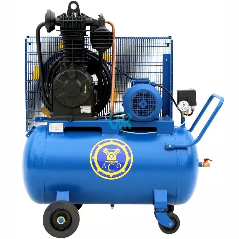 Передвижной поршневой компрессор К2/13 Бежецкого завода АСО с компрессорной головкой С415М, производительностью 890 л/мин, производительность по нагнетанию 680 л/мин. Двигатель 5,5 кВт / 380 В. Реле давления Condor MDR. Ресивере объемом 150 л. Максимальное давление 13 атм. Размеры 135 х 65 х 135 см, масса 250 кг.